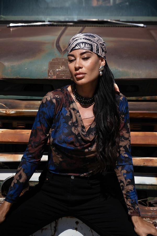 Μπλούζα εμπριμέ ελαστικό ντραπέ