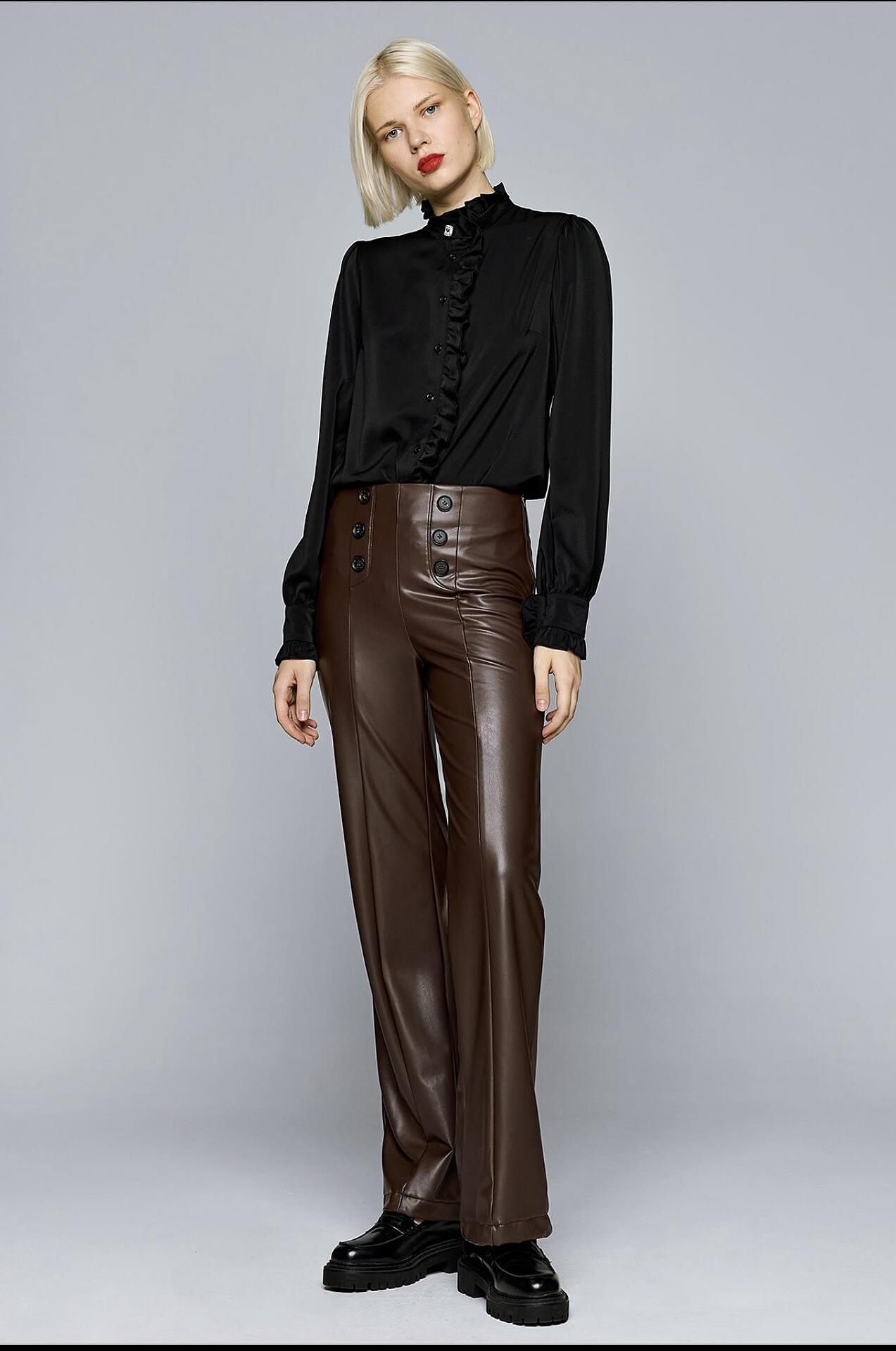Dejavu παντελόνα δερματίνη με κουμπιά.
