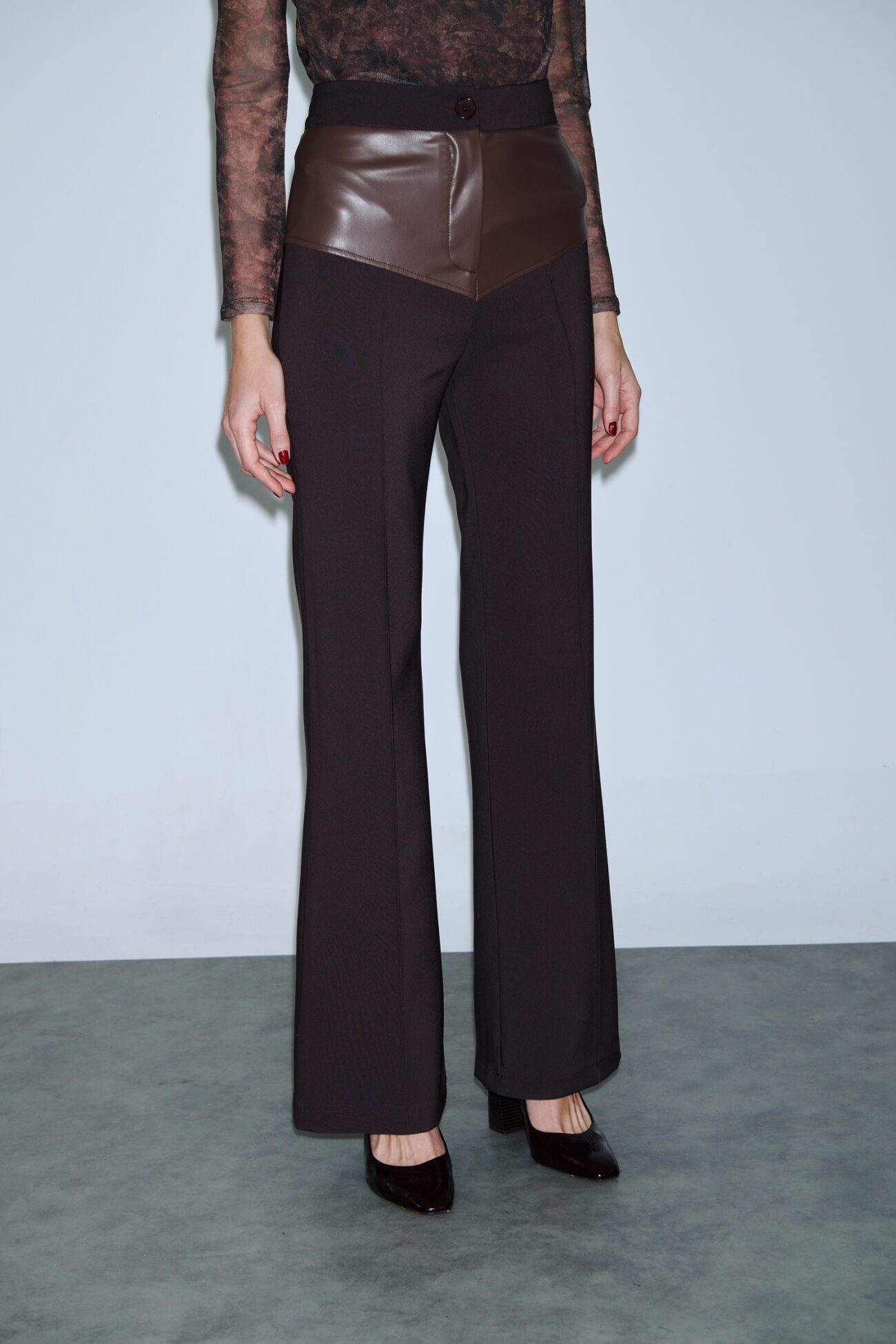 Dejavu Ψηλόμεσο Παντελόνι με Δερματίνη Λεπτομέρειες