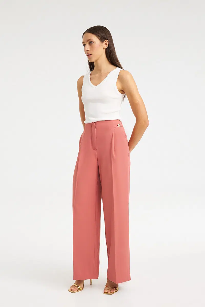 • Κομψή πιέτα μπροστά: Προσθέτει κίνηση στο παντελόνι και ενισχύει τη διαχρονική tailored αισθητική του σχεδίου.
