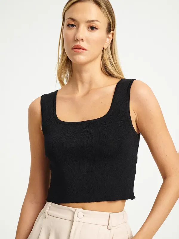 Minimal και ευέλικτο πλεκτό τοπ που αγκαλιάζει το σώμα και αναδεικνύει κάθε σύγχρονο look.