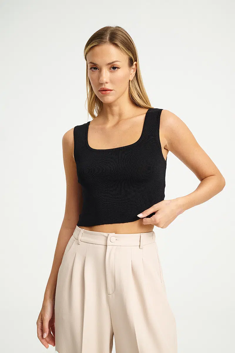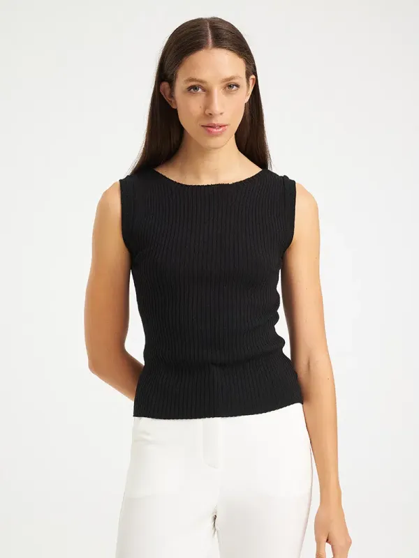 Minimal και ευέλικτο πλεκτό τοπ που αγκαλιάζει το σώμα και αναδεικνύει κάθε σύγχρονο look.