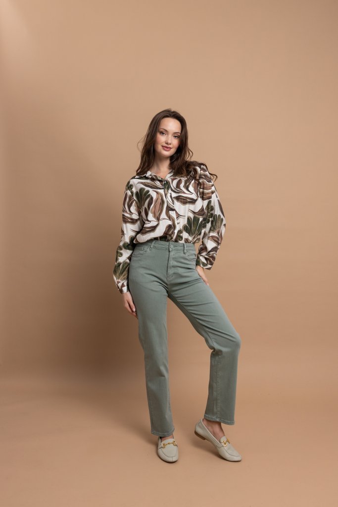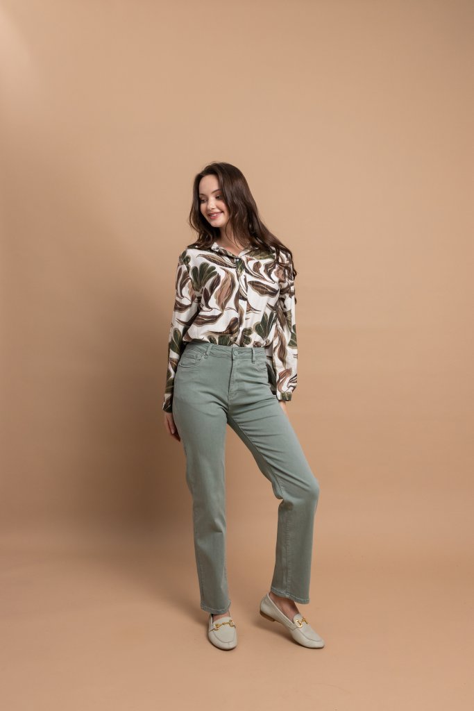 Κομψό γυναικείο παντελόνι σε μοντέρνα χακί απόχρωση που συνδυάζει άνεση και διαχρονικό στυλ. Η ίσια γραμμή του χαρίζει κομψή εφαρμογή και κολακεύει τη σιλουέτα, ενώ αποτελεί ιδανική επιλογή για καθημερινές αλλά και πιο προσεγμένες εμφανίσεις.