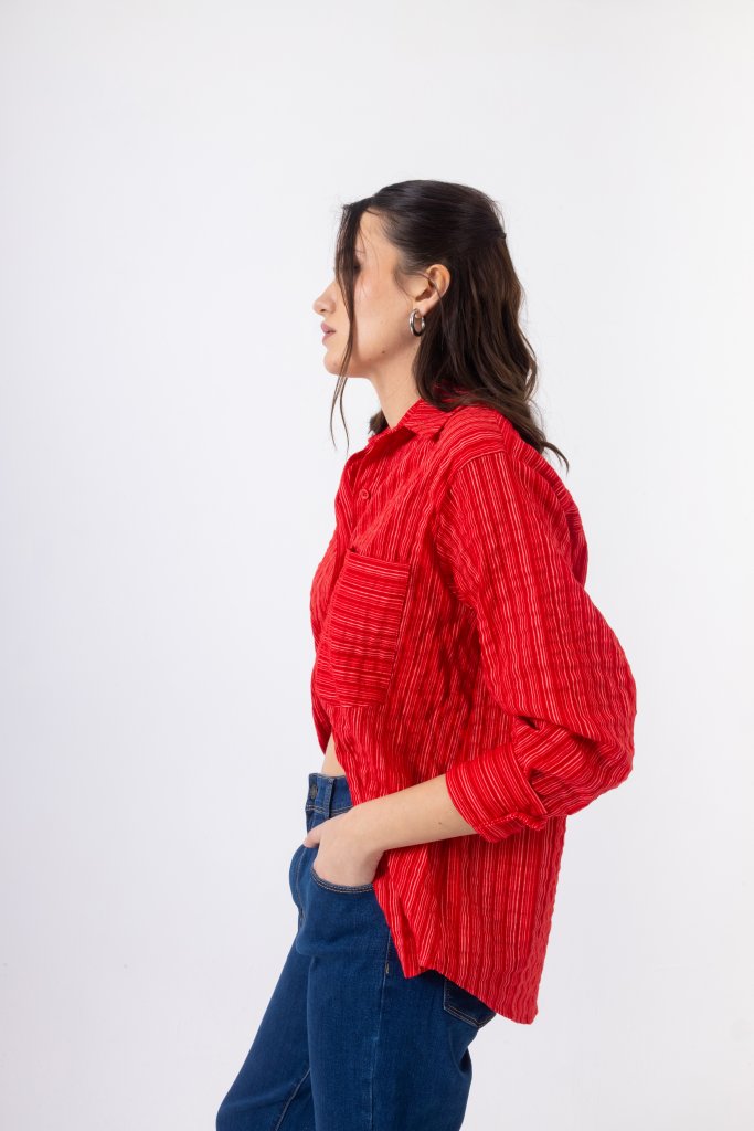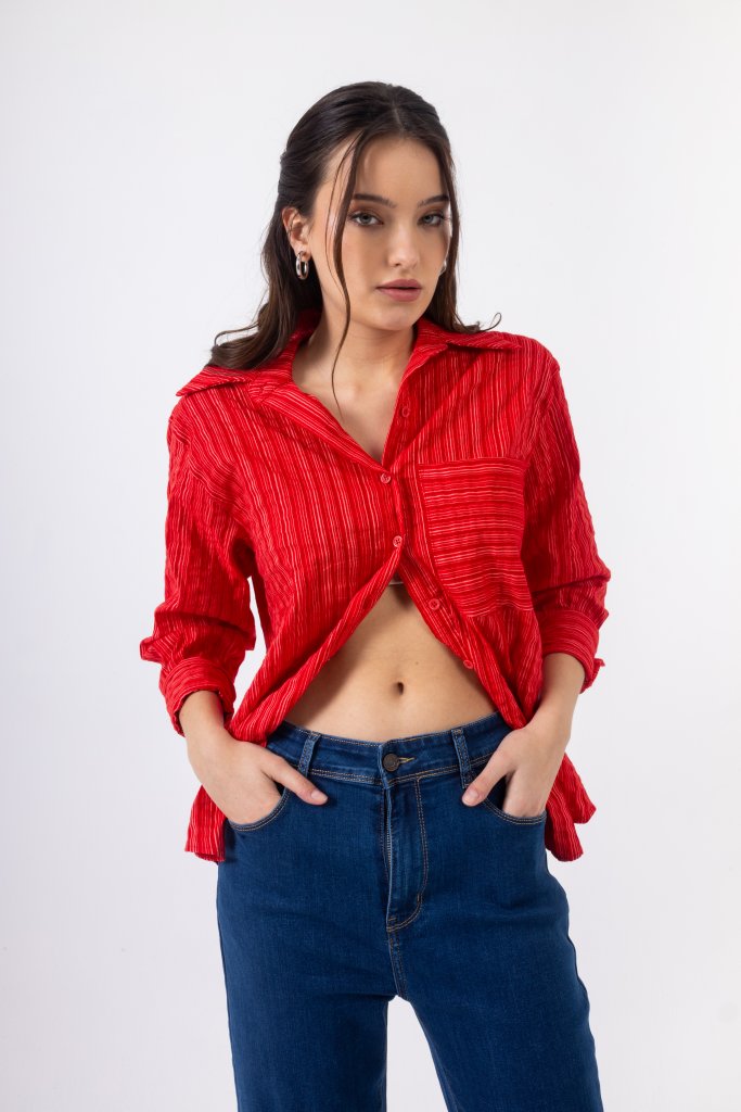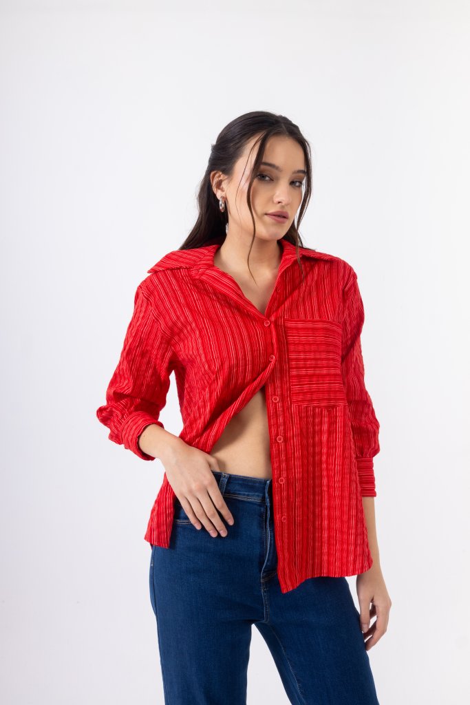 Open Πουκάμισο Ριγέ με Γιακά και Τσέπη | Κόκκινο