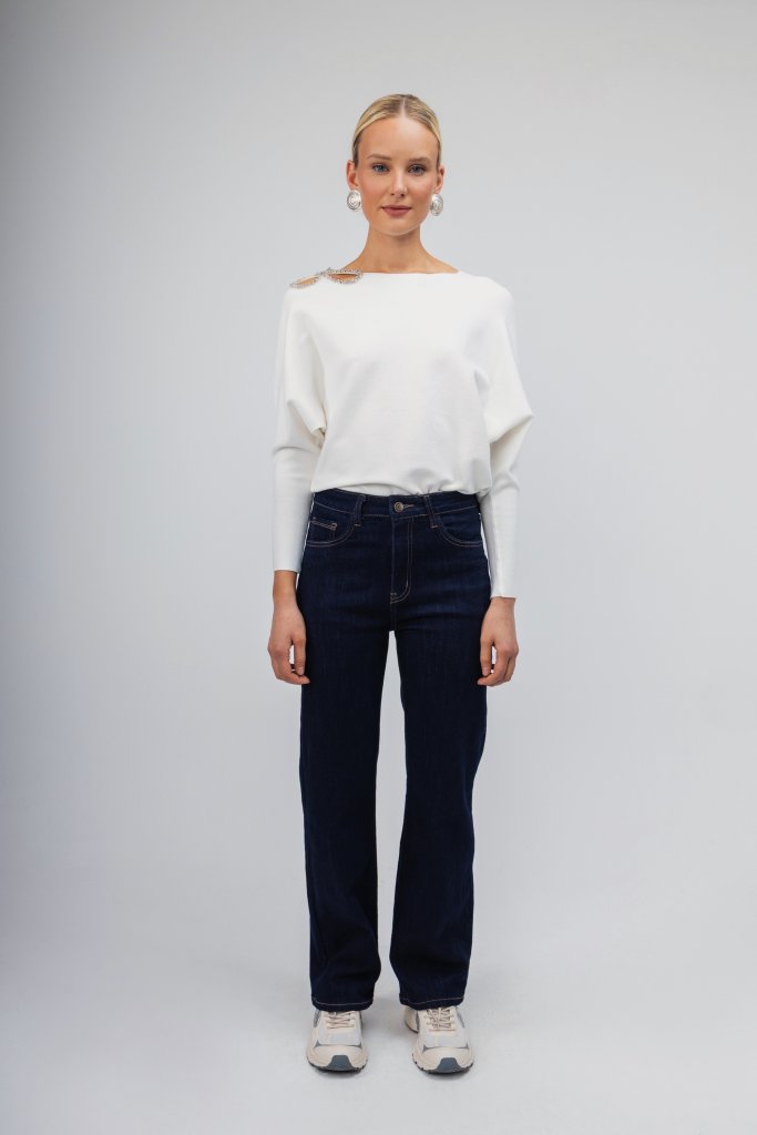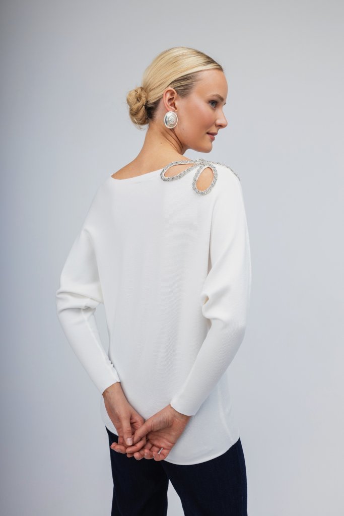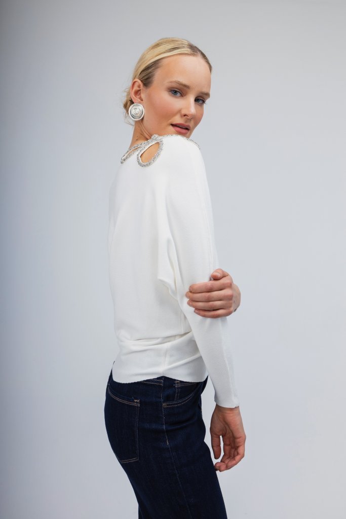 Γυναικείο πουλόβερ με σχέδιο από strass στον ώμο. Ένα μοντέρνο σχέδιο που μπορεί να αναβαθμίσει το καθημερινό σας outfit.