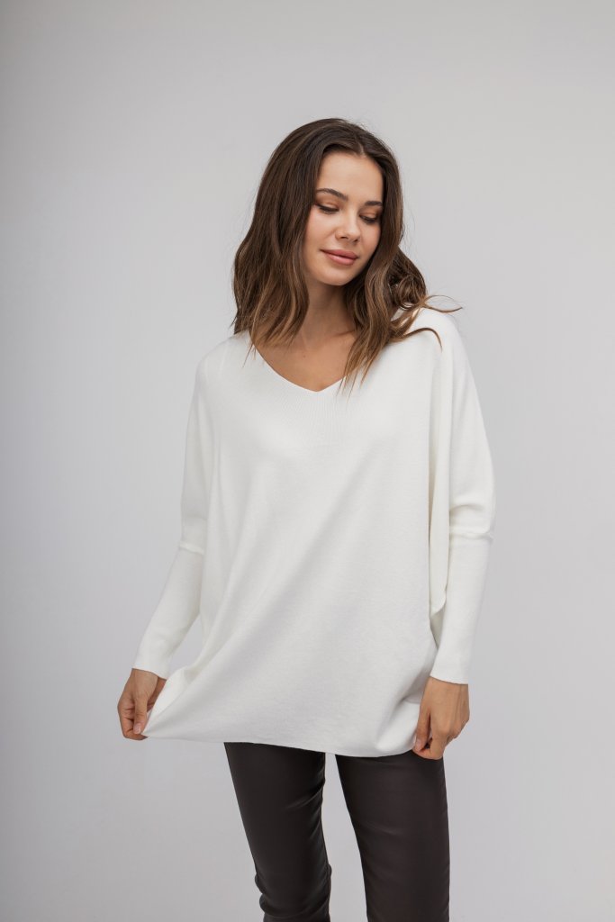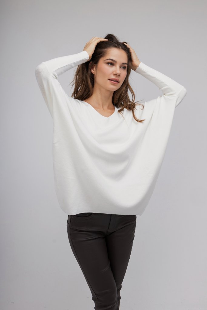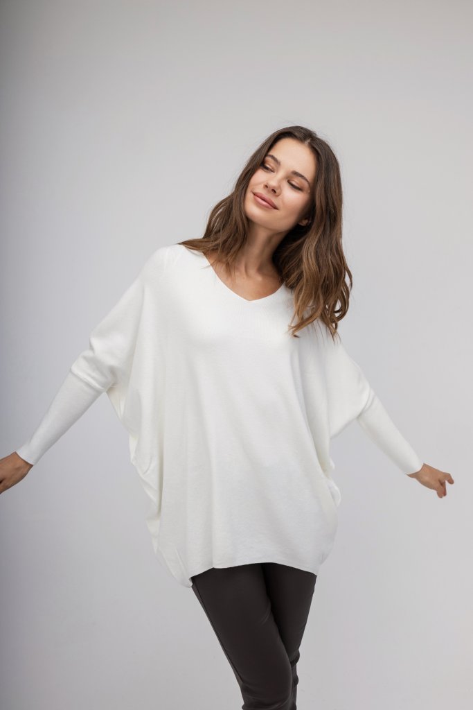 Γυναικείο πουλόβερ εκρού/μαύρο σε άνετη γραμμή διακοσμημένο με strass σε σχέδιο πεταλούδας στο πίσω μέρος. Μοντέρνος σχεδιασμός που θα ανανεώσει τα καθημερινά σας outfit.