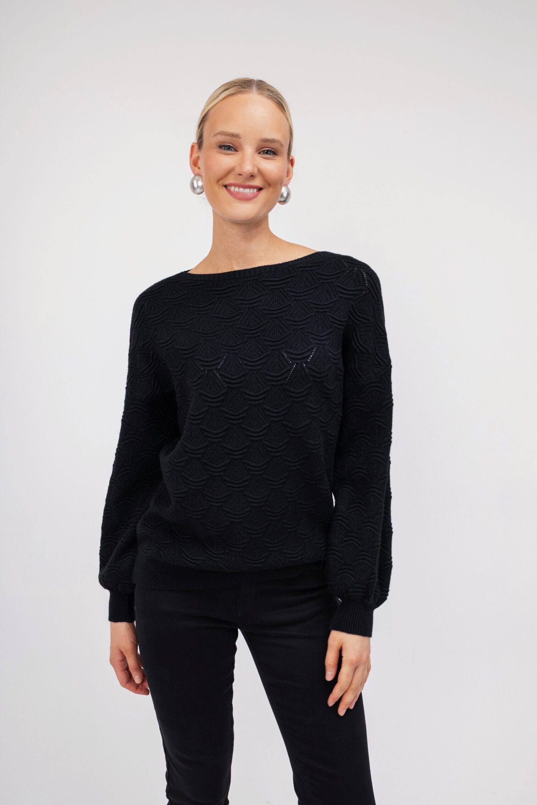 OPEN Πουλόβερ Πλεκτό με Ανάγλυφο Σχέδιο