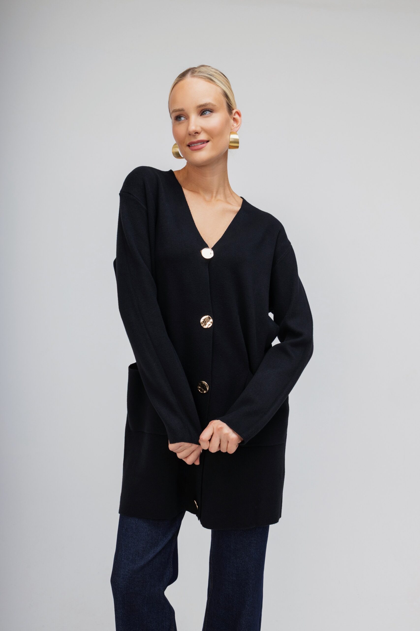 OPEN Πουλόβερ-Ζακέτα με Χρυσά Κουμπιά