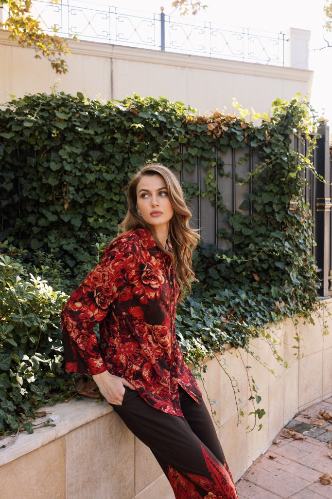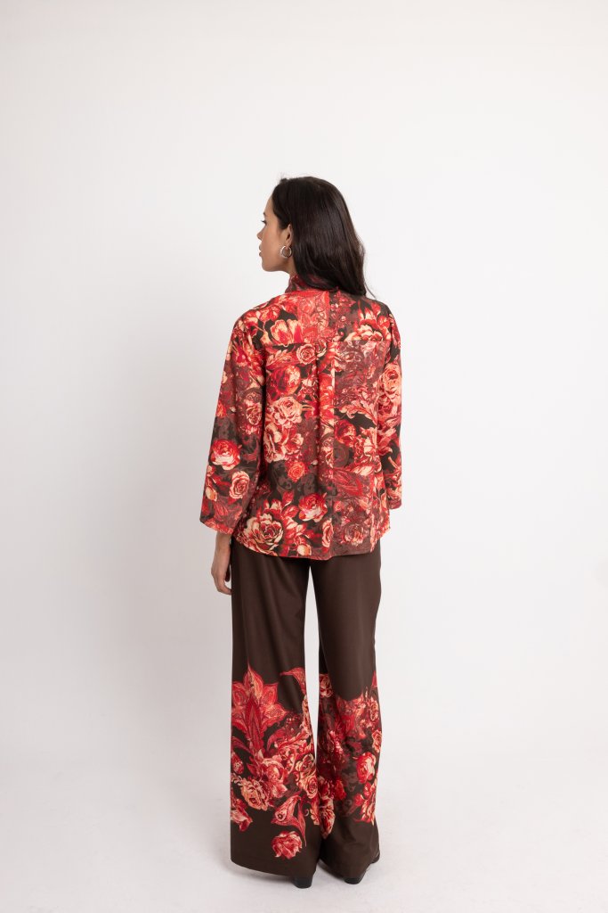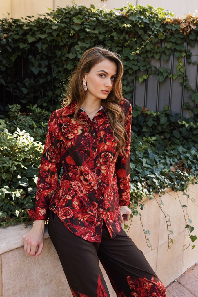 Σετ Μπλούζα-Πουκαμίσα με παντελόνι με ιδιαίτερα σχέδια από λουλούδια κόκκινο. Διαθέτει γιακά και κλείνει με κουμπιά. Ένα μοντέρνο σχέδιο που θα ανανέωσει το outfit σας. Χαρακτηριστικά Ύφασμα 100% Polyester Χρώμα Κόκκινο Είδος προϊόντος Πουκάμισο Πληροφορίες πλύσης και φροντίδας Πλύσιμο στο πλυντήριο με μέγιστη θερμοκρασία πλυσίματος 30° Σιδέρωμα στη χαμηλότερη δυνατή θερμοκρασία Μη χρησιμοποιείτε στεγνωτήριο Μη χρησιμοποιείτε λευκαντικό