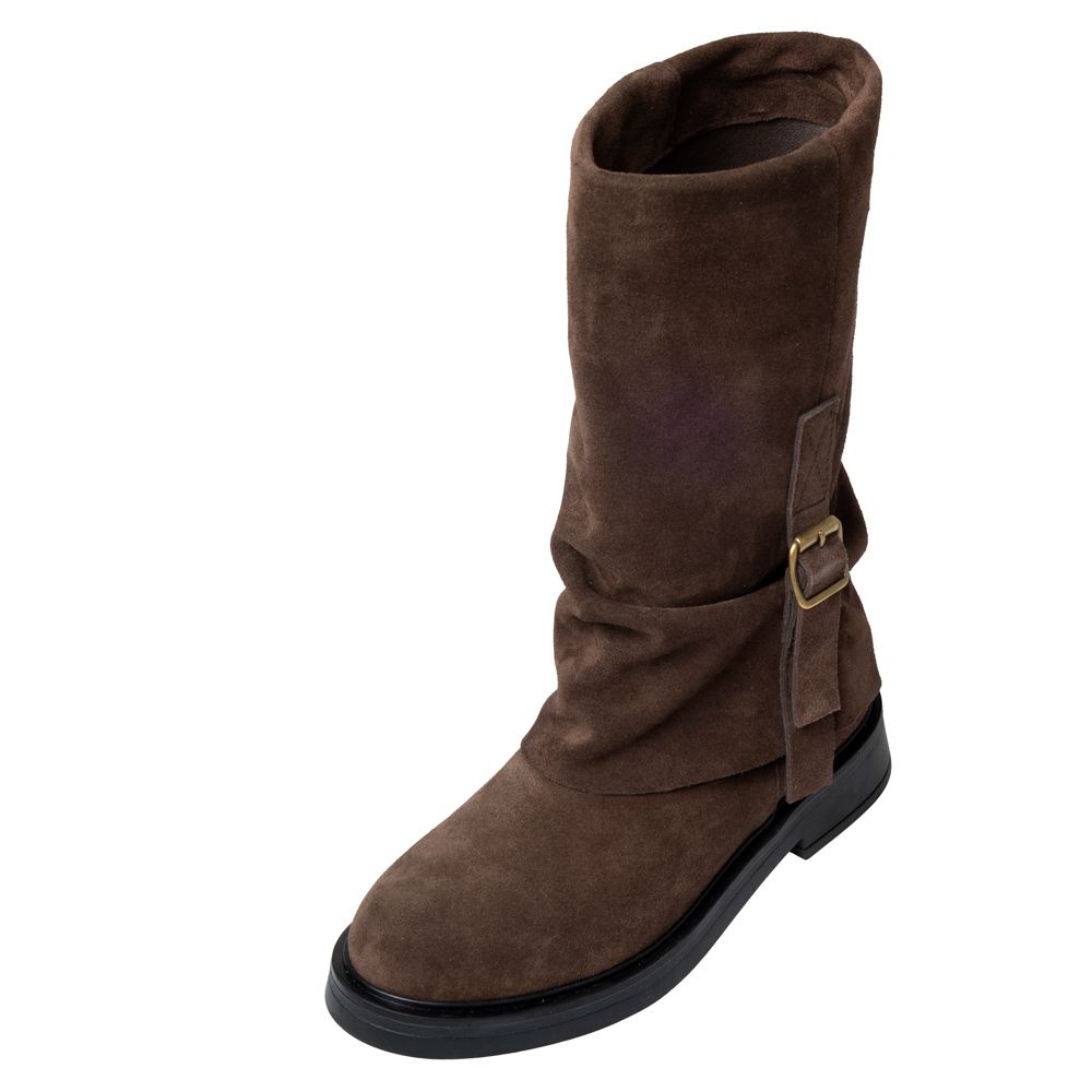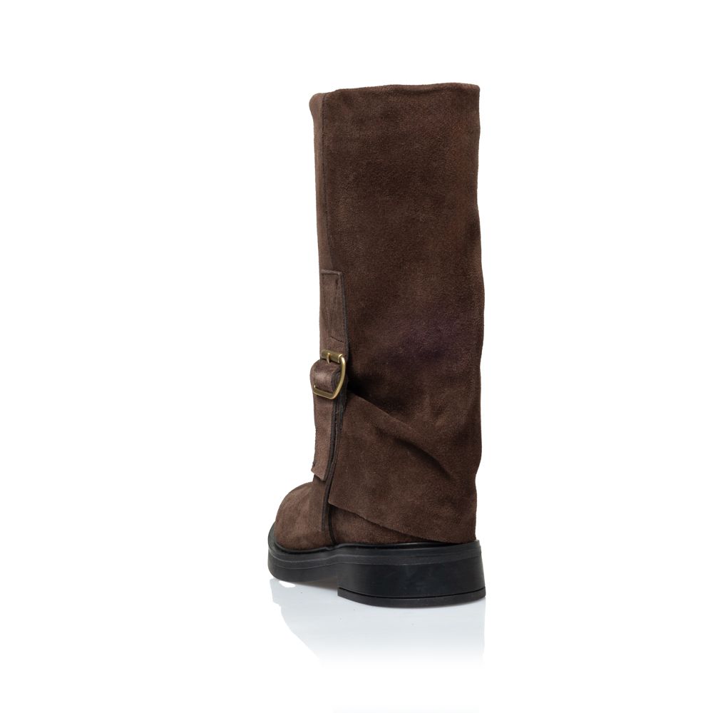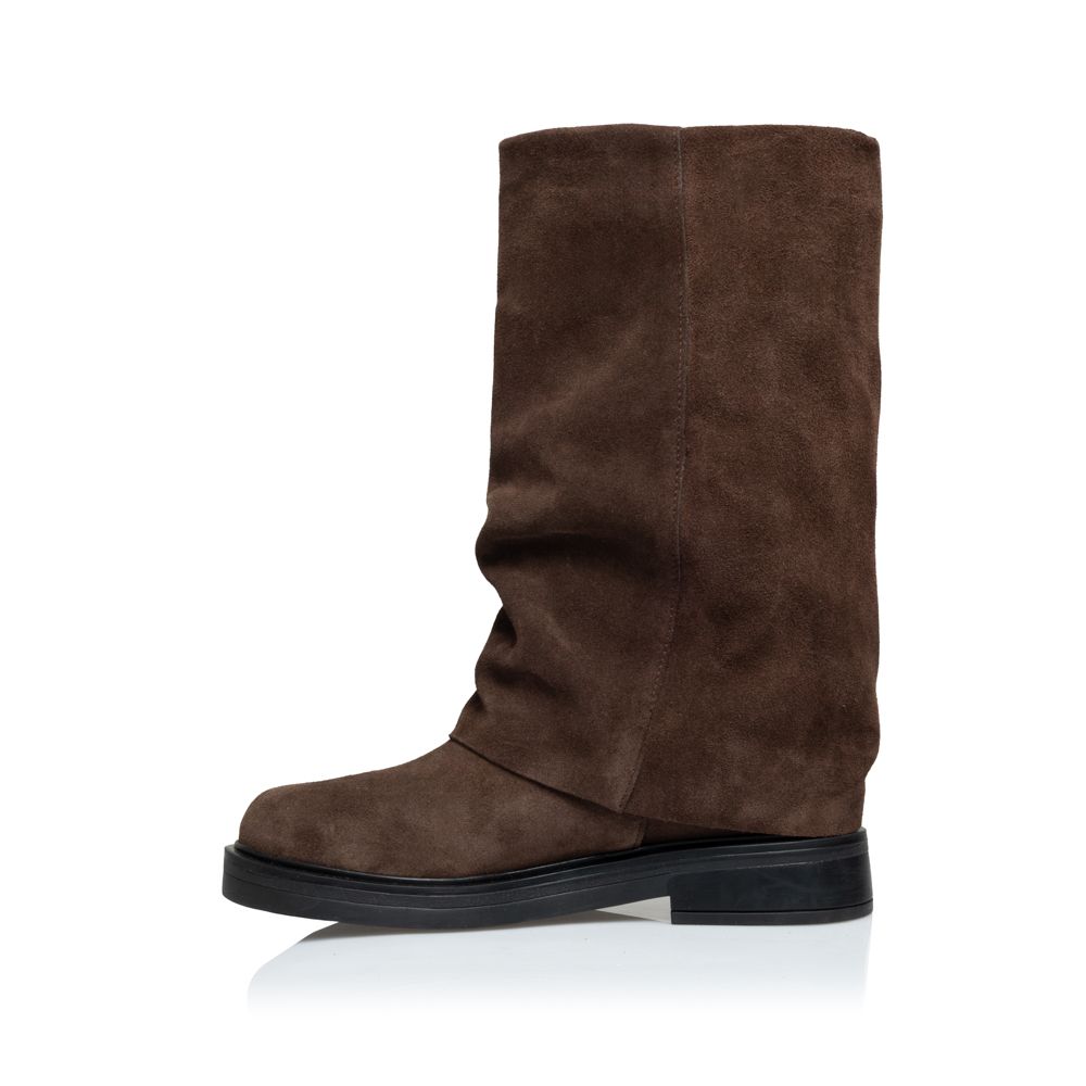 Ύψος μπότας 28 εκ. Περίμετρος γάμπας 38 εκ. Ύψος τακουνιού 8 εκ. Χρώμα καφέ.
